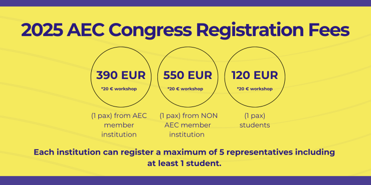 o AEC member institutions – Students: 120 euros per person (+20 euros for selected pre-congress workshops)