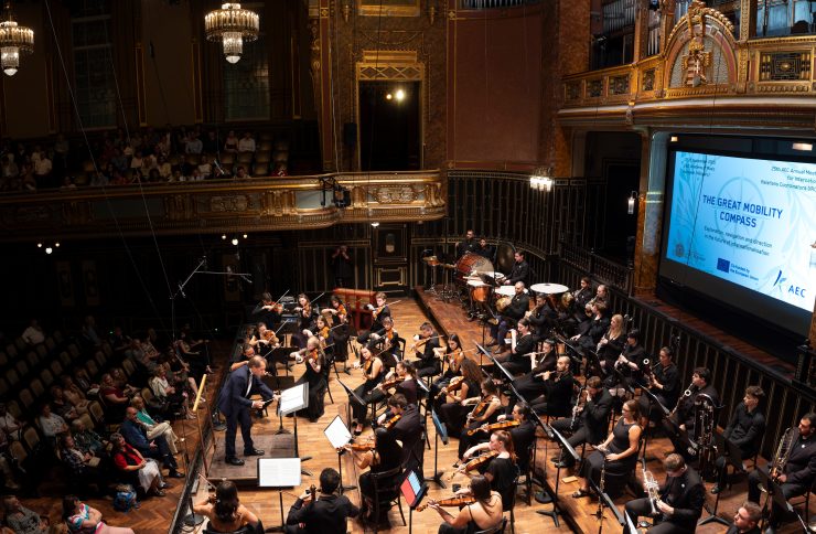 As part of the AEC Annual Meeting for International Relations Coordinators, which took place at the prestigious Liszt Academy of Music in Budapest from 17 to 19 September 2025, the Erasmus Orchestra presented a special public concert on the evening of 19 September at 7:30 pm in the Liszt Academy auditorium. This festive occasion celebrated the values of cultural exchange, collaboration, and peace that lie at the heart of the Erasmus+ programme.