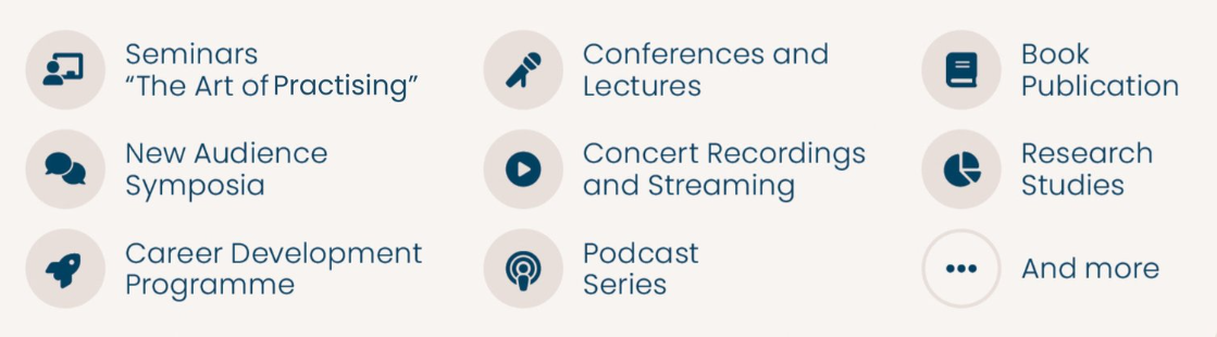 In addition to organising 77 Musethica Sessions and 8 Chamber Music Festivals, this large-scale venture also introduces new innovative formats. A wide variety of events and programmes are planned: from symposia on ‘Music and Mental Health’, to seminars on ‘The Art of Practising’, and career development programmes for young musicians. Extensive research activities are also part of 1000+ Concerts, investigating the programme’s impact on diverse target groups, including e.g. performers and audiences from the social institutions.
