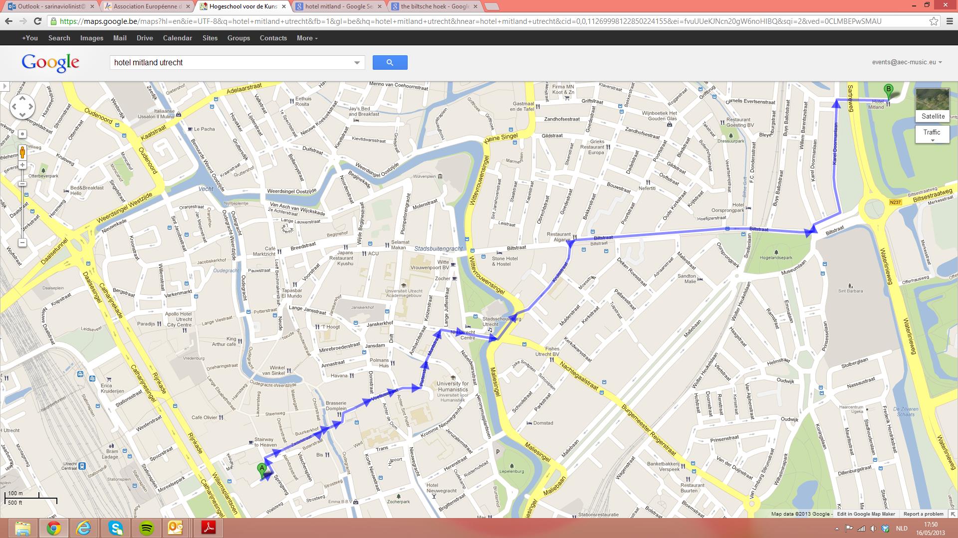 - a map showing the walking route to Utrecht Conservatory (Mariaplaats)